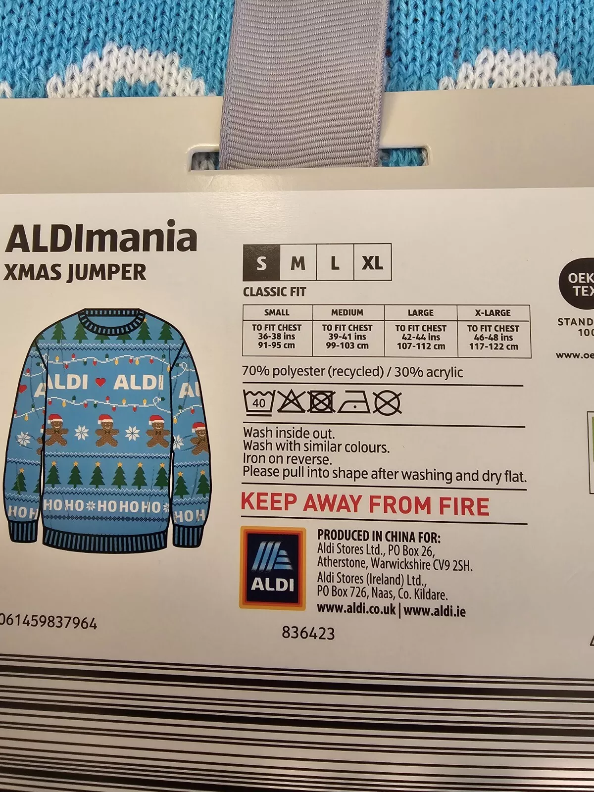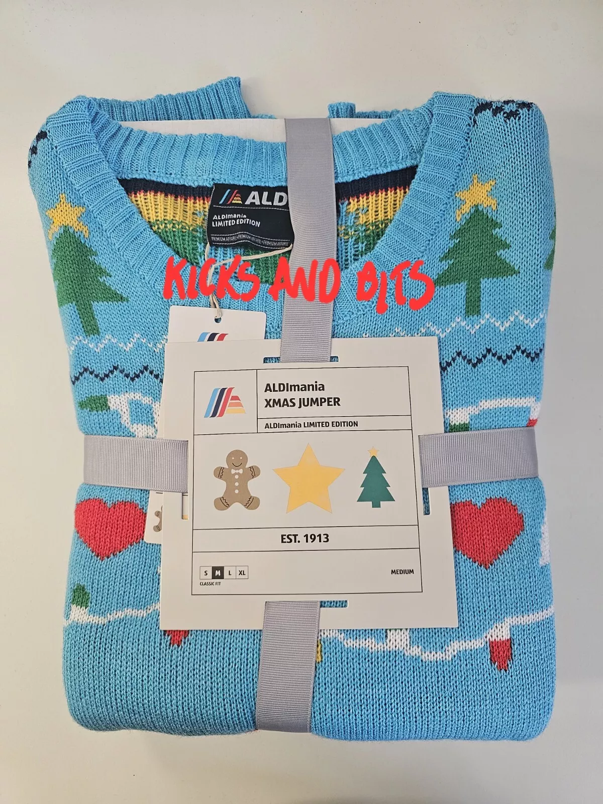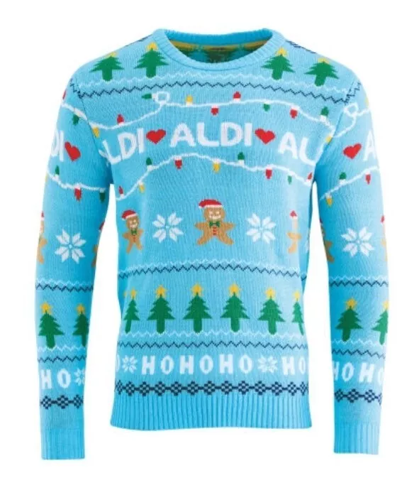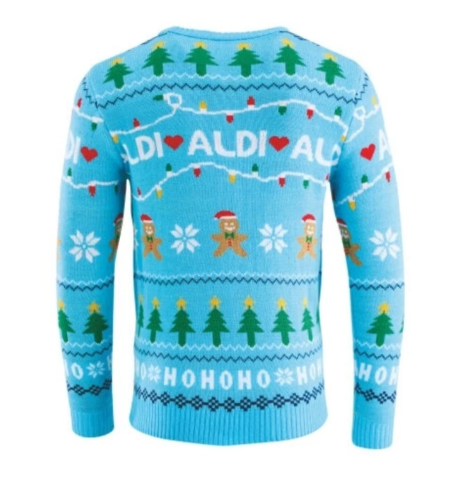 Aldi Christmas Jumper Lim Ed 2024 | Small 36 – 38″ | Blue | BNWT Aldimania