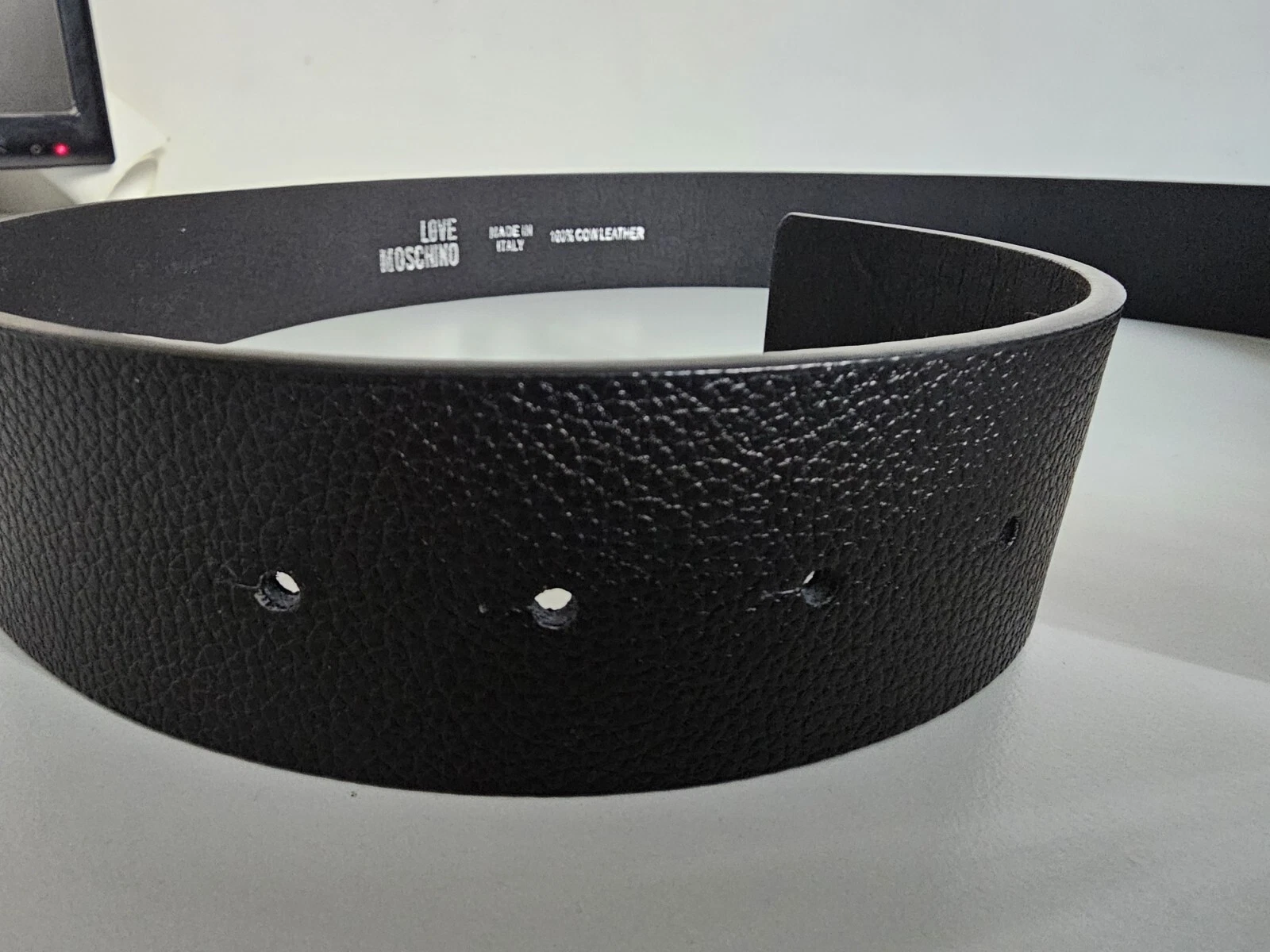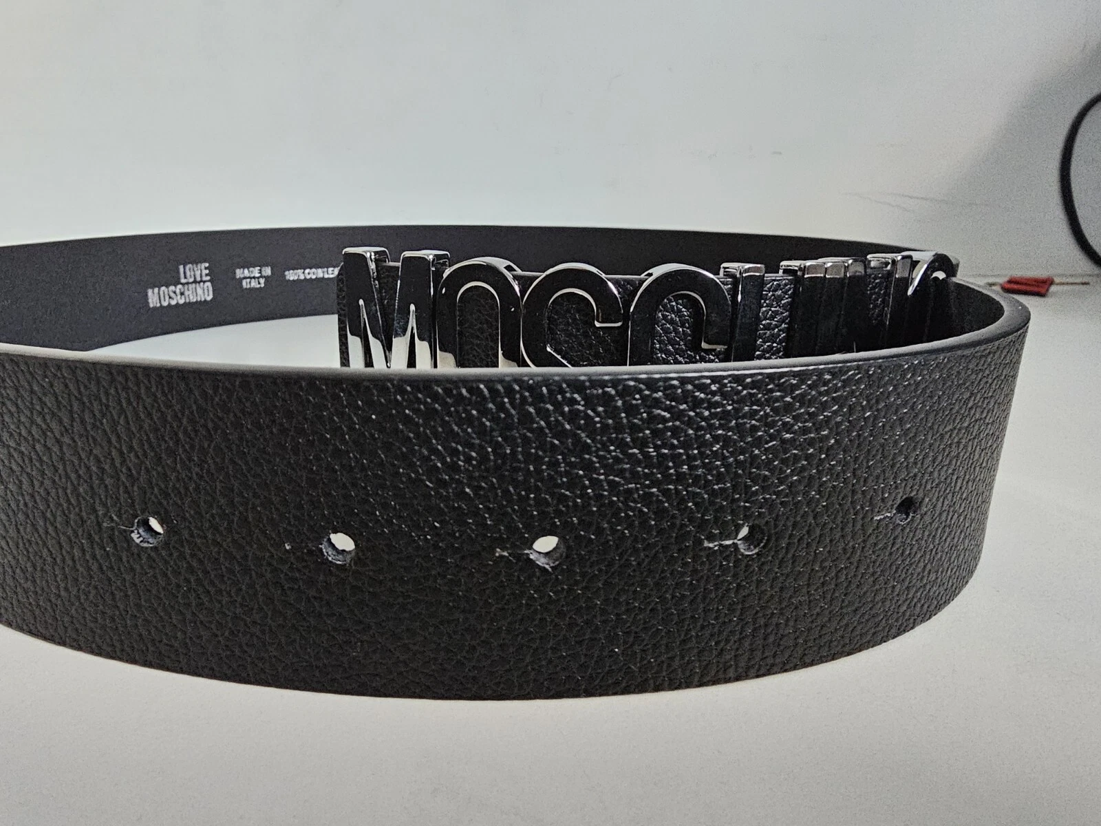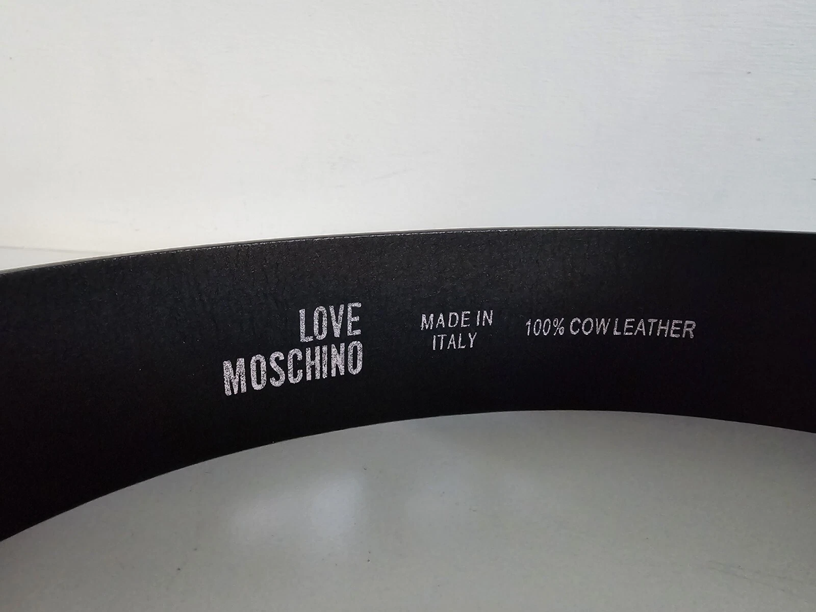 Moschino ‘Love Moschino’ Black & Silver Leather Belt | Womens | Genuine