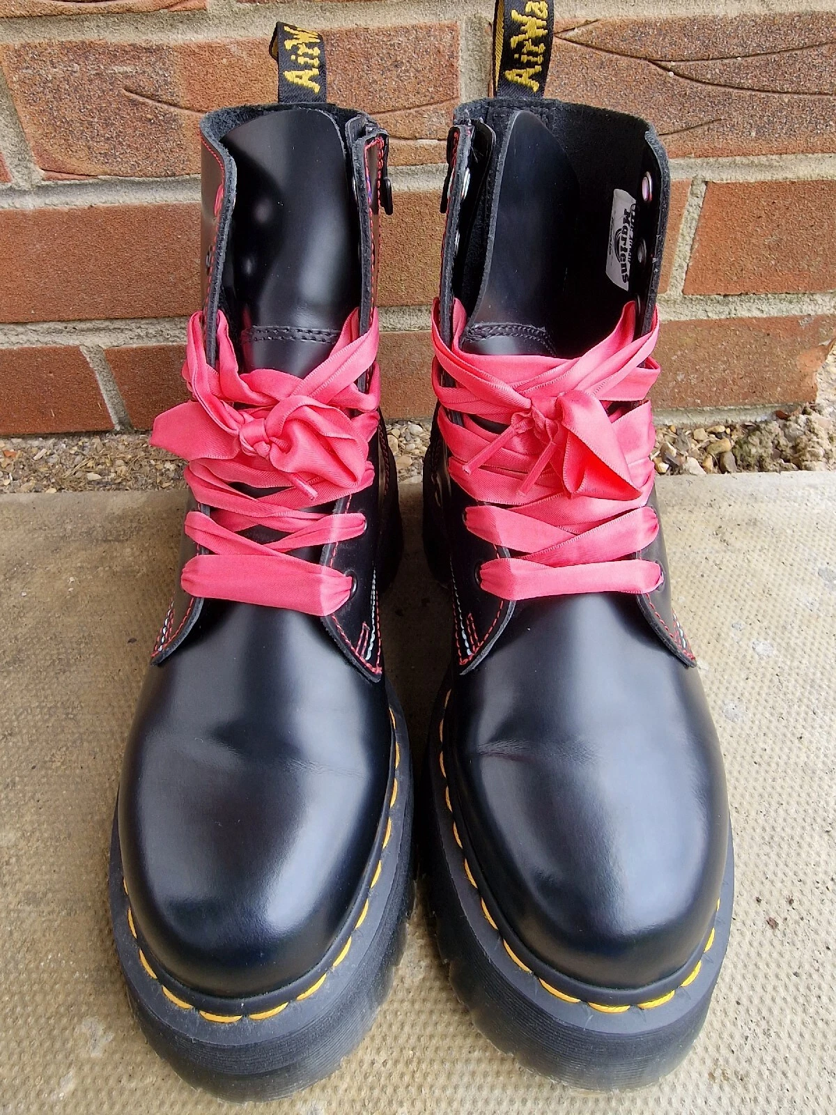 A twist on the classic Dr. Martens leather: durable, with a smooth and polished finish.