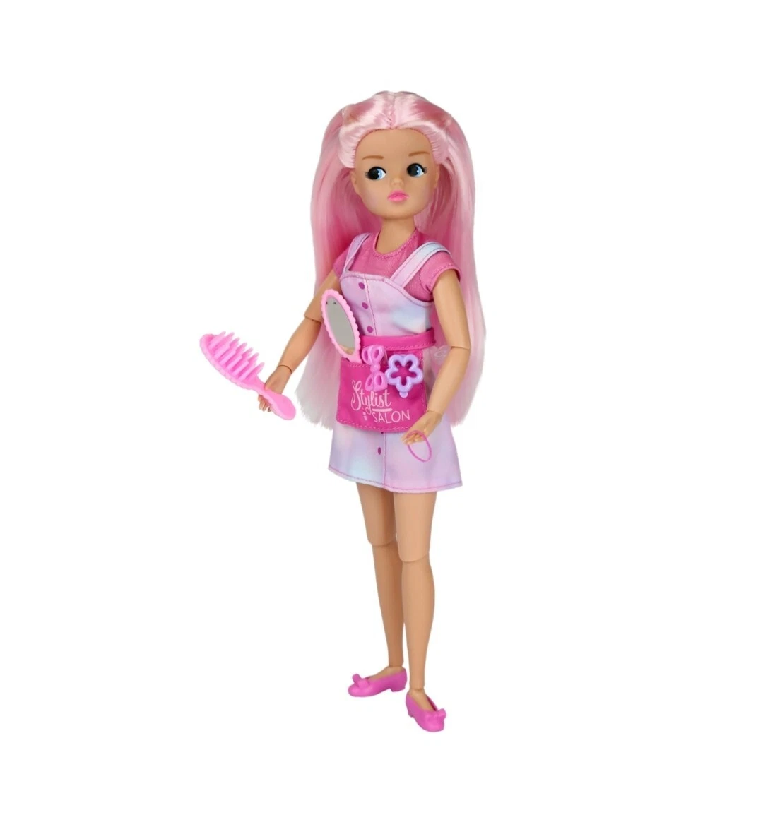 Salon Stylist Sindy also comes a hair brush, hair clips and mirror which can all be stored in her pink accessories belt.